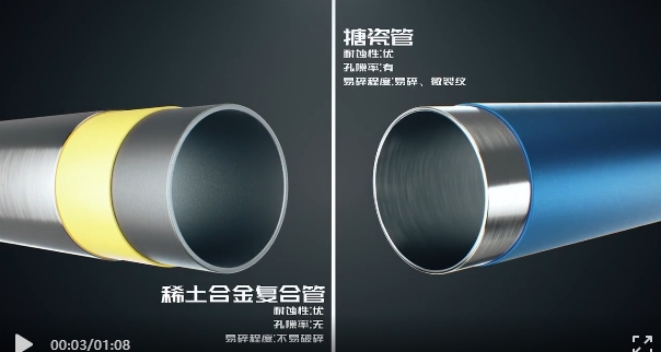 还在稀土合金涂层的基础上再涂附一层耐腐蚀封孔剂,避免在穿管、焊接、运输、吊装、清洗等过程中的“擦伤”,从而对稀土合金涂层进行有效防护,更是对基层碳钢的多层保护,这就诞生了稀土合金复合管,耐腐蚀性更强,性价比更高,实现5-10年的实际使用时间不再是梦!