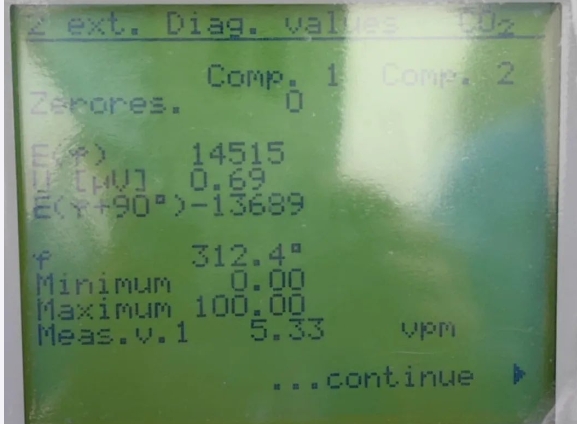 2.分析仪测试:排除外部可能存在的干扰因素外,我们通标气对仪表的重复性、准确性、漂移进行测试,主要通过诊断参数来排查测量池污染等仪器本身的问题。