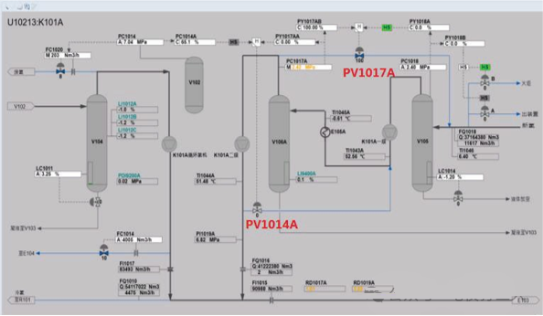 24日早晨9:26左右压缩机一级压比低报,11时车间未切副线、未汇报 上级主管部门就组织进行阀门测试。当阀门定位器故障加重时已来不及切复线,导致联锁发生。