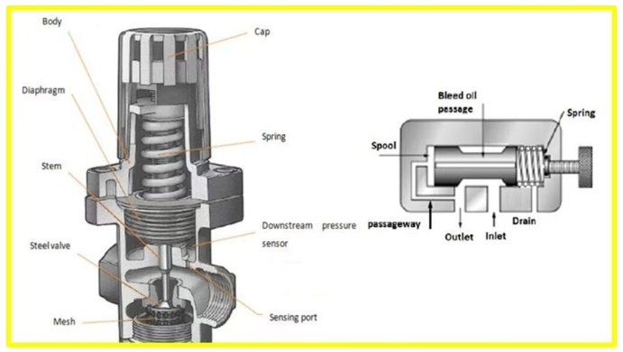 压力调节器也称为减压阀,它可以将输出压力保持在设定值。这些阀可以控制管路中的压力。