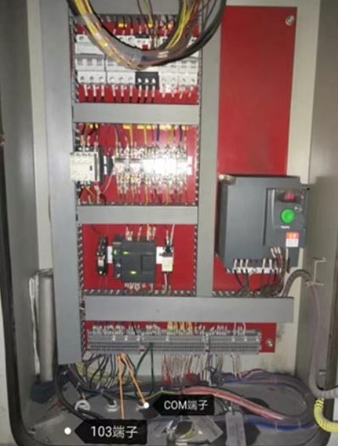 联系工艺人员关闭给煤机出口闸口后,打开落煤口检修窗口时,由于给煤机出口闸门关不死,有上窜热风,不具备检修条件,无法更换新堵煤探头。为了不影响生产,使给煤机能正常运行,上报领导取得同意,并与工艺人员协商后,暂时将接入给煤机控制柜的堵煤探头信号线从接线端子拆除,消除报警,再将堵煤探头信号线接线端子 103 与 COM 短接,使给煤机能远程正常启动。检修完成后,工艺人员远程启动给煤机,观察一段时间给煤机运行正常,无异常情况。由于暂时取消堵煤探头报警信号,无法在线检测给煤机落煤口堵煤状况,叮嘱工艺人员加强巡检,观察运行,待停炉时具备检修条件再更换新堵煤探头,以及恢复给煤机控制柜堵煤信号线接线。