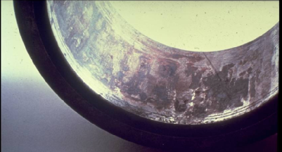 d)腐蚀/磨损光亮或红色的凹陷区。